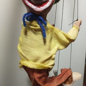 Vintage Mexican Wooden Clown Marionette Puppet