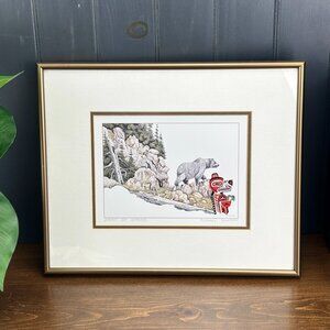 Vintage Michael Duncan Print of Scent of Spring Signed Framed Grizzly Bear Art