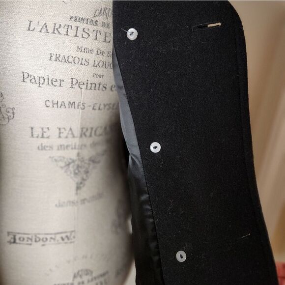 Vintage Y2K, wool viscose blend, shoulder epolettes, waist cinch in back, soft shiny black lining, Excellent Condition, Size M, Pit-19, Length-22.