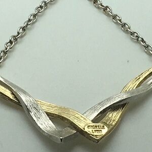 Silver And Gold Tone Choker Necklace Designer Necklace 15 “ 1970 70s