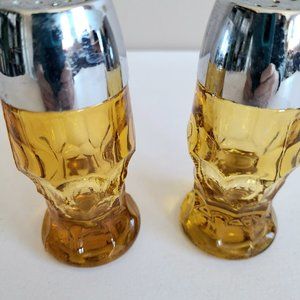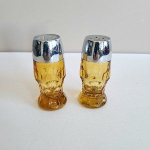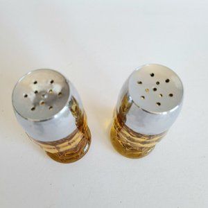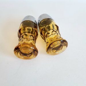 Vintage Mid Century Amber Glass Salt & Pepper Shakers.