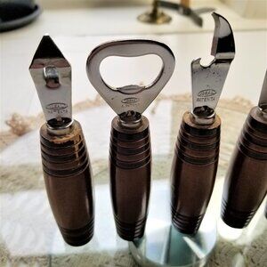 Vintage Mid Century Bar Tool Set with Wood Barrel Handles Ideal Viking