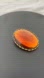 This elegant vintage scarf clip features a large, oval, cabochon of rich, fiery orange glass, expertly designed to mimic the look of natural amber. The glass has been intentionally crafted with subtle, dark inclusions in the center, which give it a realistic and beautiful spotted appearance, just like genuine amber.