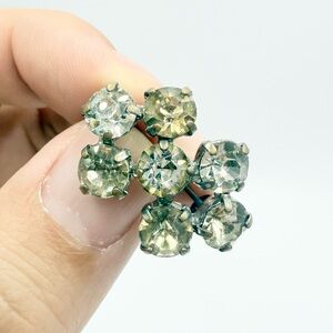 Add a touch of vintage elegance with this mid-century brooch, featuring shimmering rhinestones set in silver-tone metal. Compact and stylish, it's marked "Made in Germany" on the back and secured with a classic pin clasp—perfect for collectors or retro fashion lovers.