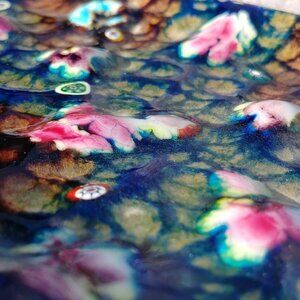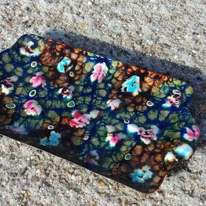 Unique vintage c.1950's/60's enamel on copper tray with a stunning millefiori / millefleur pattern! The "flowers" are raised a bit, as you can see in some of the photos.
