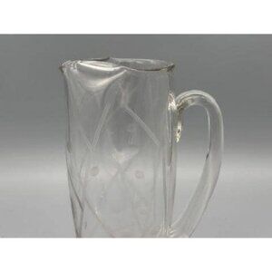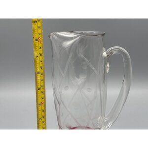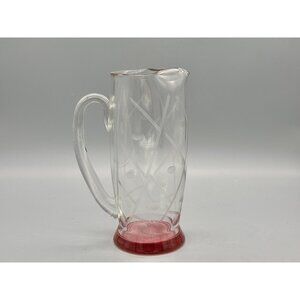 Vintage Mid Century Modern Pink Base Etched Cocktail Pitcher