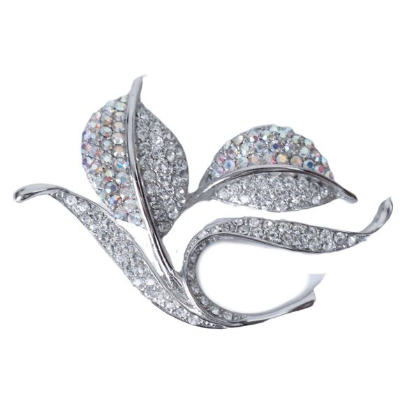 For your consideration is a beautiful vintage brooch with aurora borealis crystal rhinestones, circa 1970's.