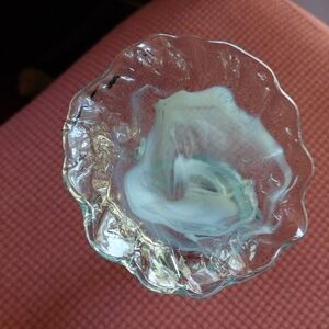 Vintage* Mid-Century Hand-blown One Piece Trumpet Glass Vase with Coiled Base. Approx 8" tall.