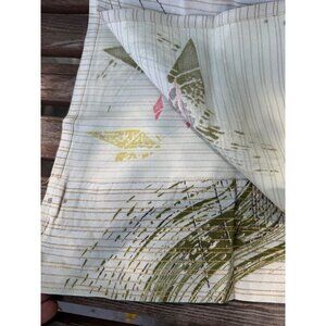 Vintage Mid-Century Print Curtain Panel Pink Green on White 90.5x20.25"