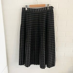 Vintage Midi Skirt Plaid Pleated Dark Academia Goth Wool Black Off White Sz 12