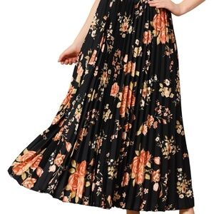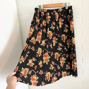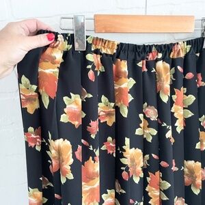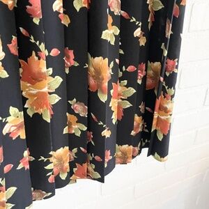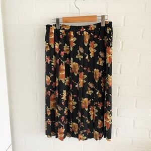 Vintage Midi skirt Pleated Dark Floral Black Orange Military green Flowy 13-14