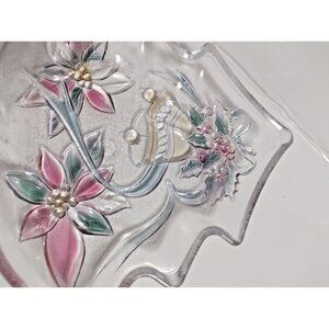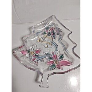 Vintage Mikasa Candy Dish Tree Shaped Poinsettia And Bells 7 1/2" x 6 3/4"
