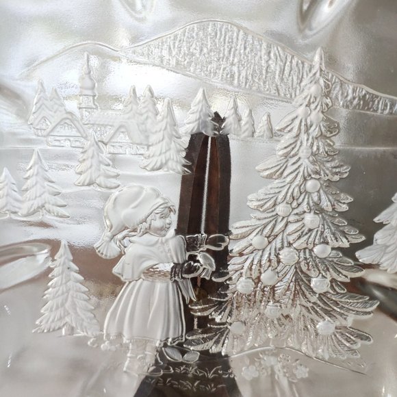 Festive Christmas Round Bowl Platter Dish in Glass with Frosted Ruffle Rim