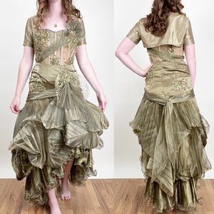 Vintage Mike Benet Gown Corset Skirt Ruffle Pleated Embroidered Beaded Formal