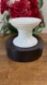 This elegant pair of vintage milk glass candle holders features a beautiful embossed swirl design and glossy white finish. Their pedestal base gives them a graceful profile—perfect for adding vintage charm to any mantel, dining table, or wedding display.