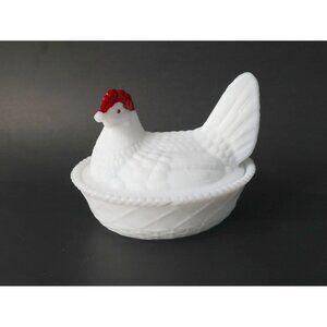 For your consideration is a vintage hen on nest milk glass candy dish, produced by Westmoreland.