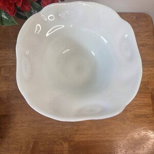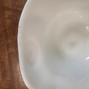 The raised leaf/fern design adds visual texture and organic elegance to this classic milk glass piece. Its large 24 oz capacity and dramatic silhouette make it a standout for centrepieces, serving, or display.