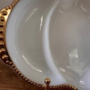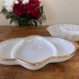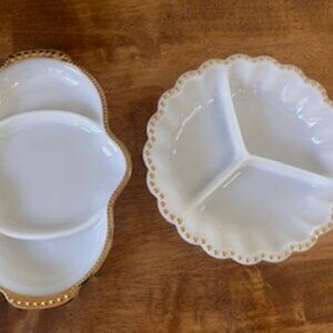 Vintage Milk Glass Divided Dishes Gold Trim Fire King Anchor Hocking Serving Pla