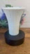• Classic mid-century milk glass in flared trumpet shape