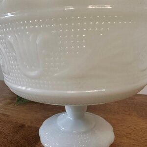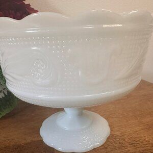 Vintage Milk Glass Grape Compote Bowl Footed Panelled Candy Dish Fruit Centre