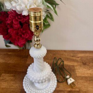 Vintage Milk Glass Hobnail Lamp –‎ Twisted Base Table Light Tested Working