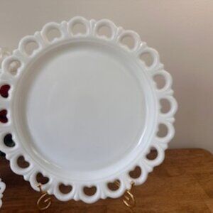 Vintage Milk Glass‎ Lace Edge Bowl Platter Set Westmoreland Style Open Loop Rim