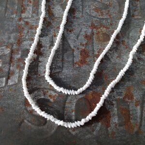 Vintage Milk Glass Necklaces 2 Strands White Penne Seed Beads Pointed Cylinders