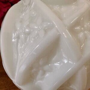 Vintage Milk Glass Vase Floral Motif – Mid-Century Sculpted Raised Leaf Design