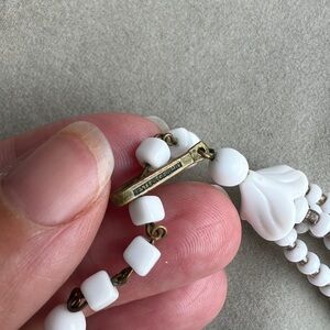 Milk glass necklace Mark Western Germany beaded flapper necklace Vintage 50s