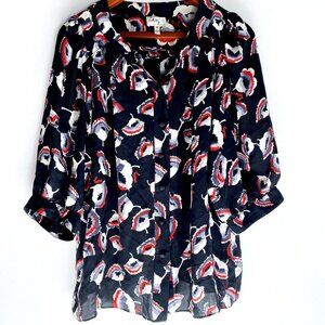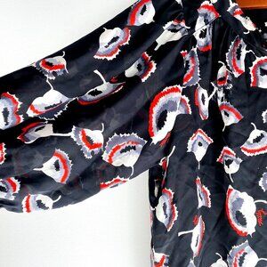 Vintage Milly Silk Floral Wide Sleeve Black Red White Button Down Top 8