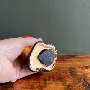Vintage mini ceramic hand painted pirate piggy bank. Such a cute piece! Does have an imperfection on his eye- a smear - and wear / breakage to plug - see photos. Measures approx. 5.75" x 3.75" x 2.5".