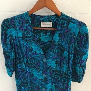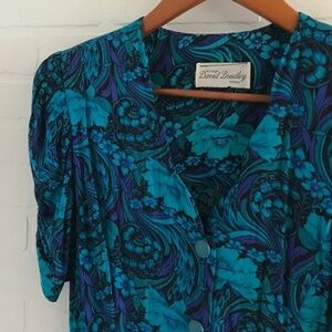 Vintage Mini Dress Sweetheart neck Cobalt Blue/turquoise Paisley Floral print M