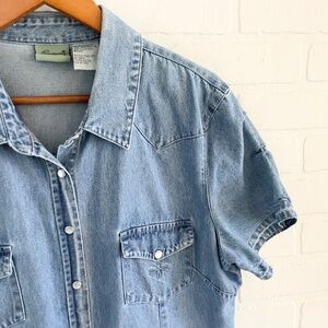Vintage Mini Shirt Dress Snap down Denim Jean Light wash Embroidery Western XL