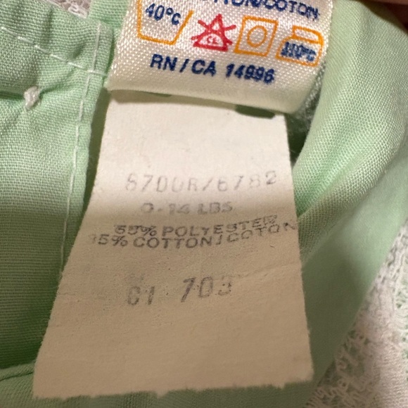 Vintage Mini Togs Green Nannette Baby Doll Dress with Floral Embroidery Newborn