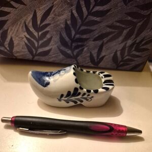 Vintage Miniature Dutch Clog Delft Blue White Holland Porcelain Shoe