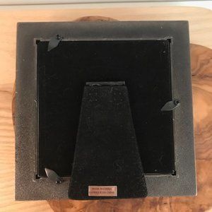 Add or remove pictures with metal clips on back. Designed for vertical display on a flat surface.