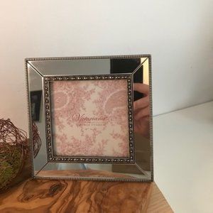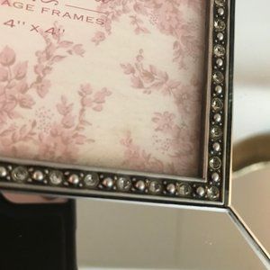 A stylish way to highlight your favorite photos, the mirrored frame add a touch of shine to the room. There are alternating crystals and silver metal beads on the inside edge and metal beading on outside of the frame for dimension and uniqueness.