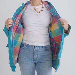 Vintage Misty Harbor Teal Plaid Lined Waterproof Raincoat Jacket M