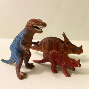 Vintage Mix Lot 3 Dinosaur Figures Styracosaurus Trex Triceratops Toys