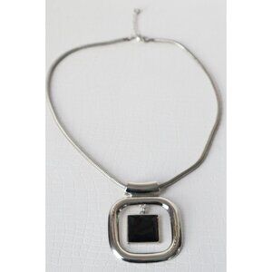 For your consideration is a vintage modern necklace, metal silver toned squares with a black faucet center and a snake chain, circa 1990's.