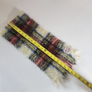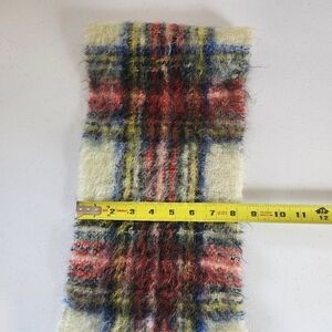 Vintage Mohair Wool Red green white Plaid Fringe Scarf 40x8 Scotland
