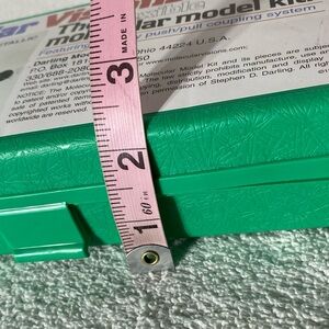 Great vintage condition. Minimal signs of wear. There are no instructions or manifest. I am pretty sure that all the pieces are there but I cannot confirm 100%. I have looked at other kits online that claim to be full sets and it appears this one might have a few extra pieces, cannot confirm. I bought it used and I have never been able to get it closed properly, see pics. Will be shipped AS IS.