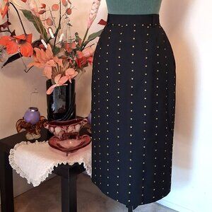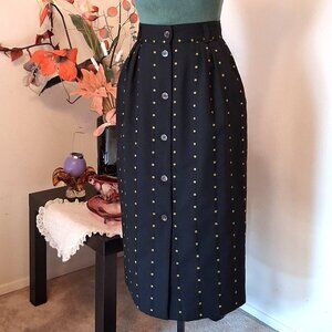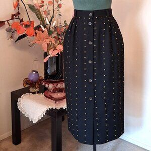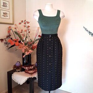Vintage Mondi Black Green High Waist Wool Midi VTG Skirt
