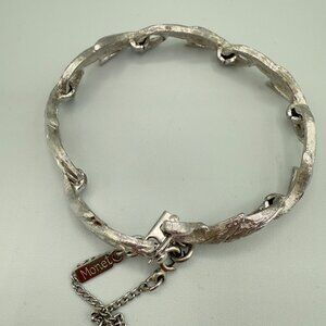 Vintage Monet Brushed Silver Leaf Design Bracelet with Safety Clasp