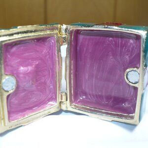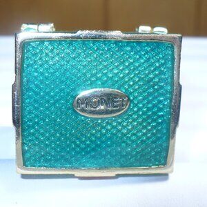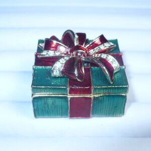 Vintage Monet Enamel With Crystals Trinket Box Christmas Inspired Pill Box
