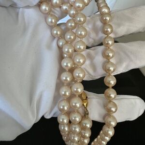 Vintage by Monet faux pearls knotted necklace in a champagne hue that look and feel like real salt water pearls.