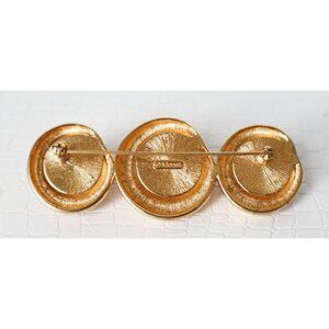 For your consideration is a vintage Monet brooch/pin featuring three red cabochons set in a gold-tone metal.