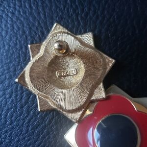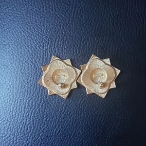 Large star in a square gold plated stud earrings in red, gold and black. Excellent preowned condition.