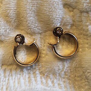 Style - circle hoop earrings / gold tone clip ons / gold huggie earrings / 90s hoop earrings