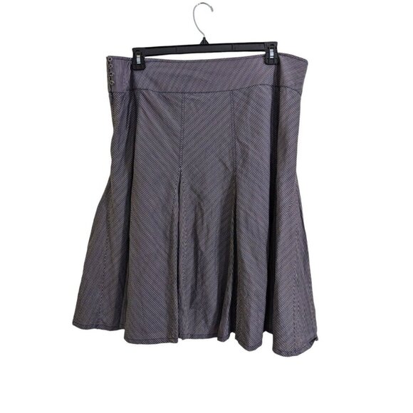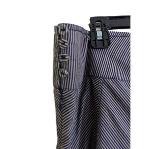 Vintage Monsoon Cotton Skirt 16 Pinstripe Box Pleat Paneled Navy Gray Fit Flare